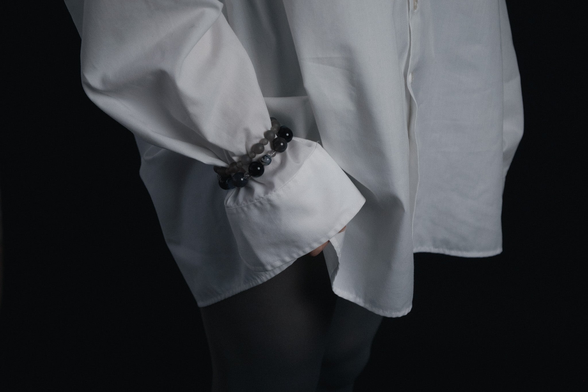 Voilée reflects the quiet meeting of two worlds — jewelry and garment, form and fabric, silhouette and touch. A language of tone, surface, and structure. A fragment wrapped in mist and memory. Each piece is composed of natural gemstones in veiled hues of smoke, mist, and lavender greys. Chosen for their subtle depth and natural irregularity. Designed to echo the body’s natural curves.